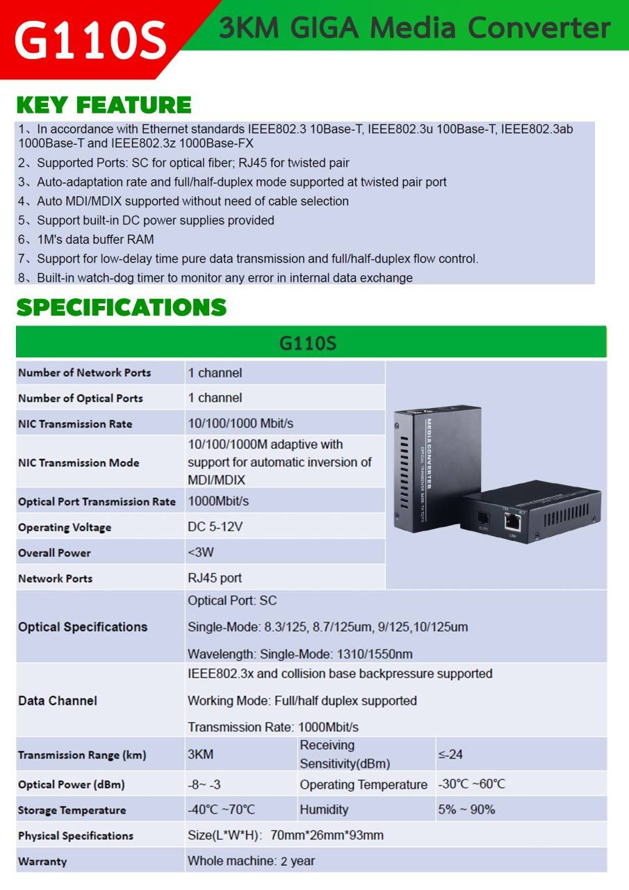 3KM Media Converter G1100S/3 KM 100/1000Mbps (คู่)