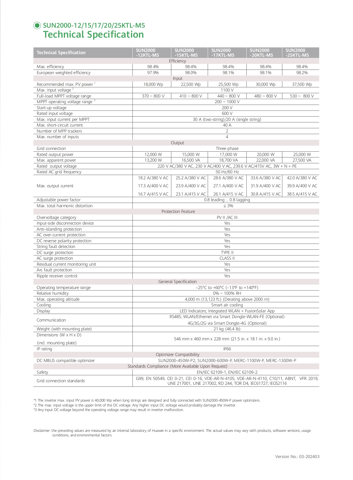 Huawei Inverter SUN2000-15KTL-M5 (10Y) 15 KW / 3 PH รุ่น SUN2000-15KTL-M5