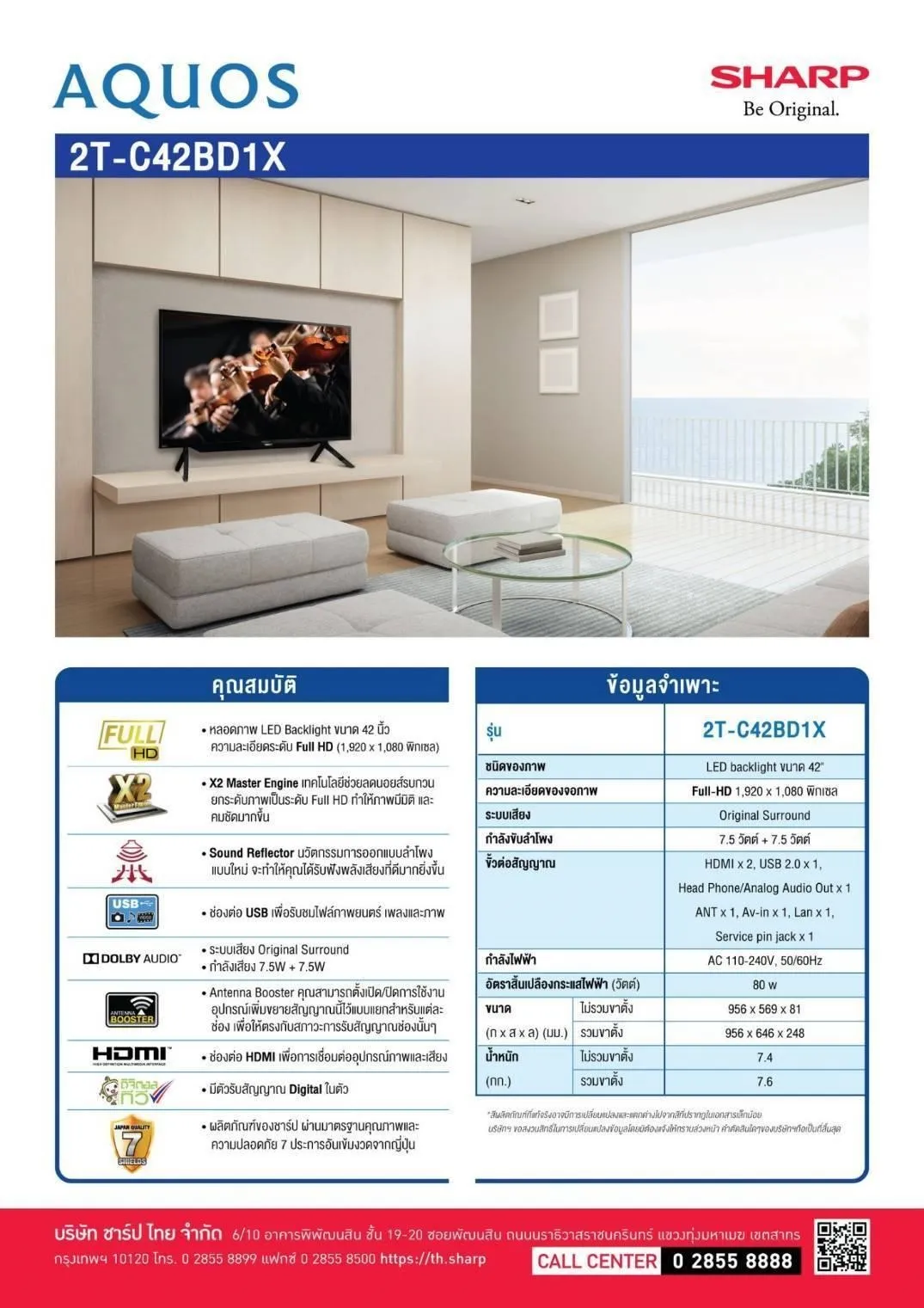 Sharp LED Full HD รุ่น 2T-C42BD1X ขนาด 42 นิ้ว ตัวใหม่ล่าสุด!! รับประกันราคาถูก (ประกันศูนย์ชาร์ปไทย)