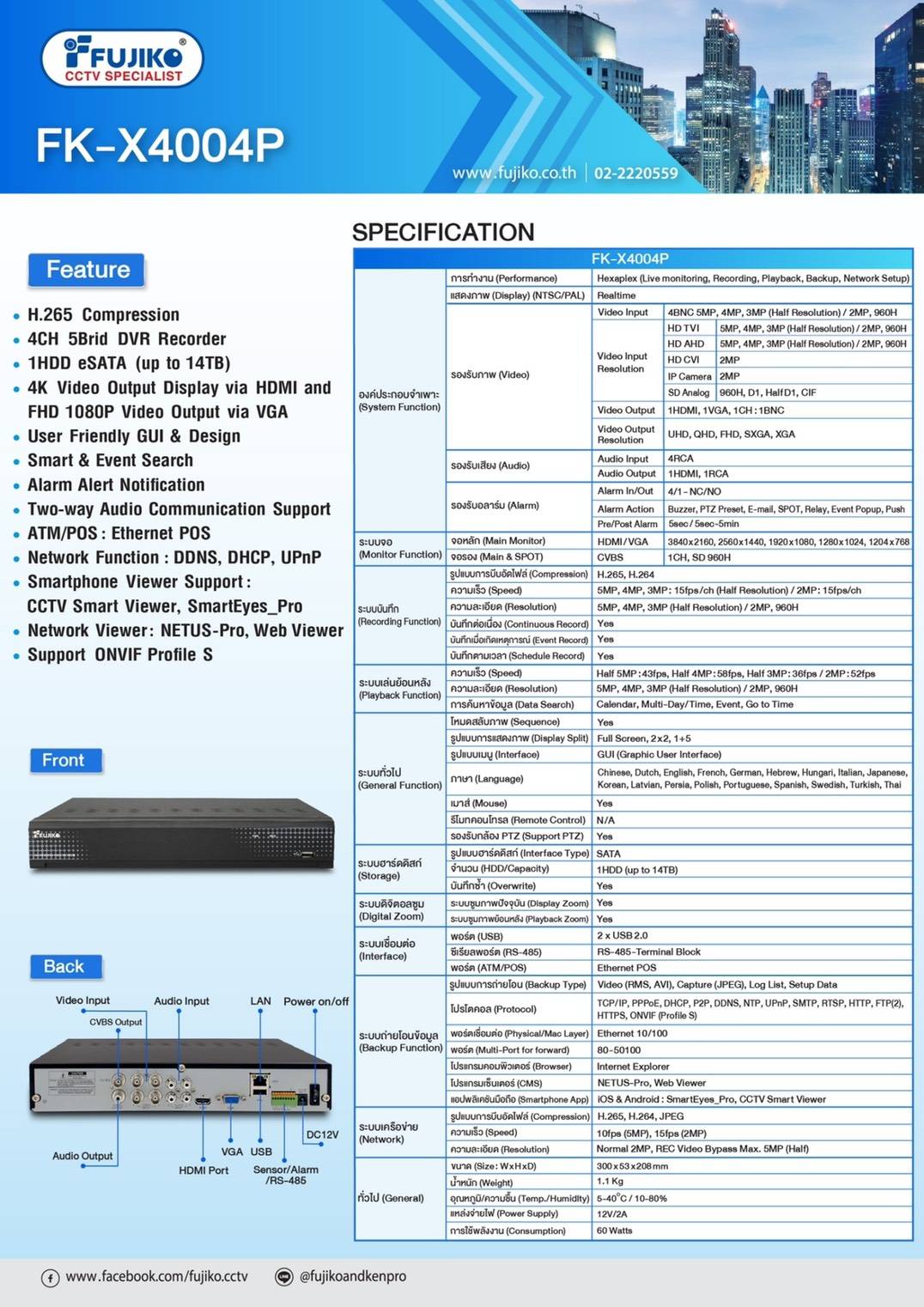 2. เครื่องบันทึก 4 CH FUJIKO รุ่น FK-X4004P จำนวน 1 เครื่อง